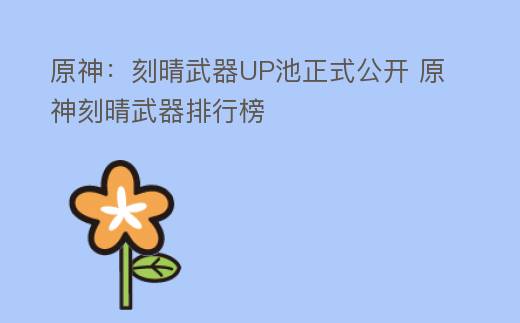 原神:刻晴武器UP池正式公开 原神刻晴武器排行榜