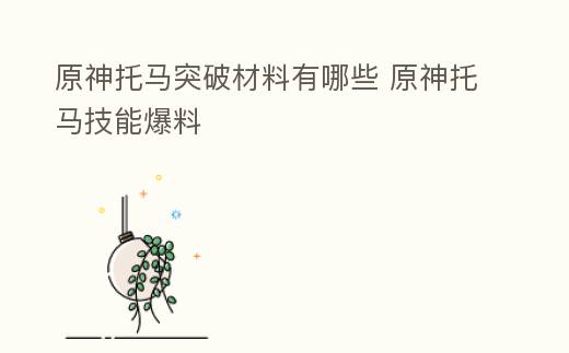 原神托马突破材料有哪些 原神托马技能爆料
